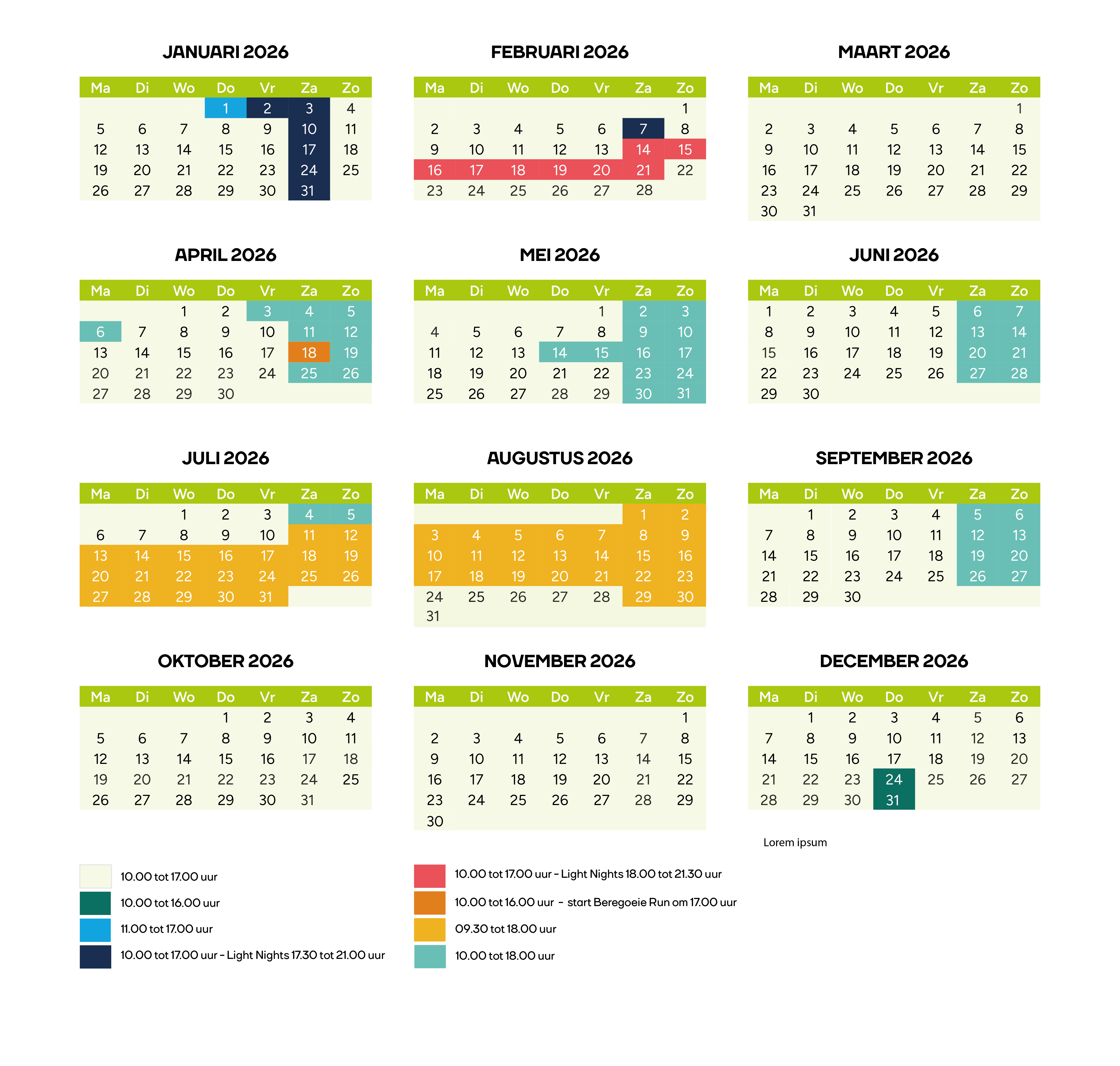 Wij zijn 365 dagen per jaar open! De openingstijden zijn: