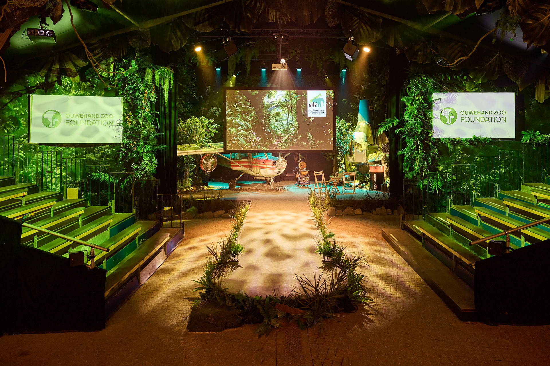 Het Groene Theater is een van de meest onderscheidende zalen van Ouwehands Dierenpark. Deze ruime, authentieke theaterlocatie met vaste tribune en podium biedt plaats aan tot 300 personen en vormt een uitstekende setting voor zakelijke bijeenkomsten waarbij aandacht en beleving centraal staan. Met zijn open uitstraling, goede zichtlijnen en natuurlijke sfeer vormt het de ideale plek voor presentaties, teamdagen, bedrijfssessies en plenaire onderdelen van grotere evenementen.