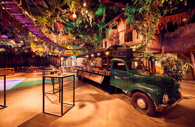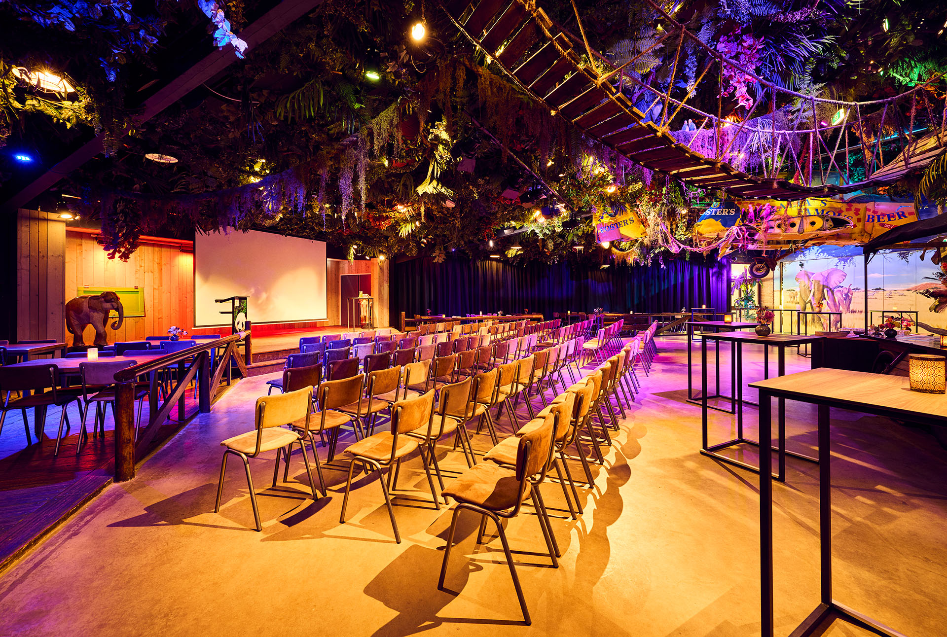 Onder het bladerdek spot je hier en daar de meest bijzondere dieren. Subtiele geluidseffecten en spelingen van het licht doen je denken dat je daadwerkelijk gestrand bent in de verlaten jungle. Vanuit de verte hoor je de withandgibbons roepen en de leeuwen brullen. Tijdens de lunch en het diner begeef je je in de tropen met het uitgebreide buffetten. Geniet van de veelzijdigheid van de gerechten en voel je net als de koning van de jungle.