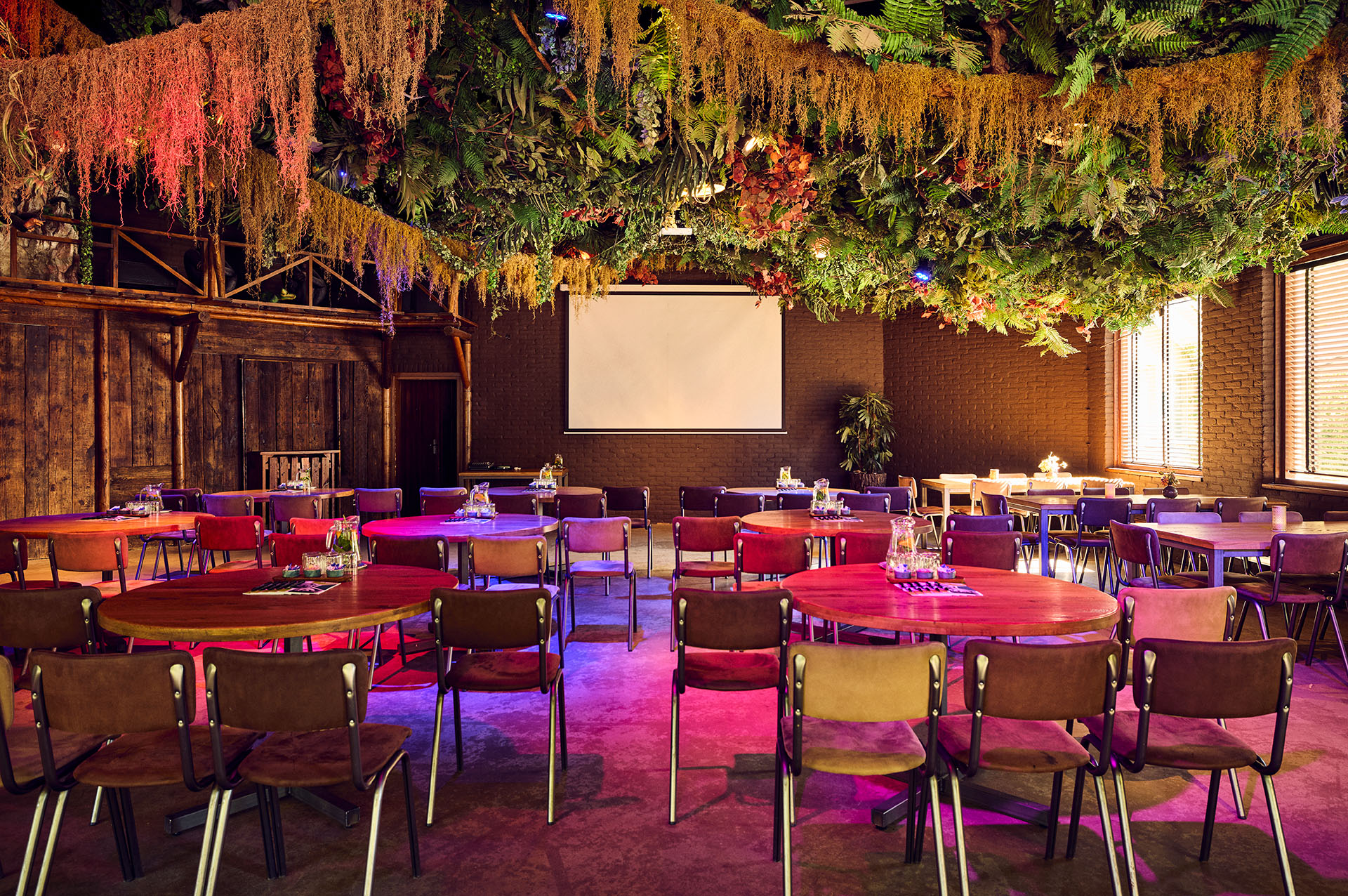 De ruimte kan door middel van een geluidsdichte wand worden gescheiden van het Jungle restaurant.