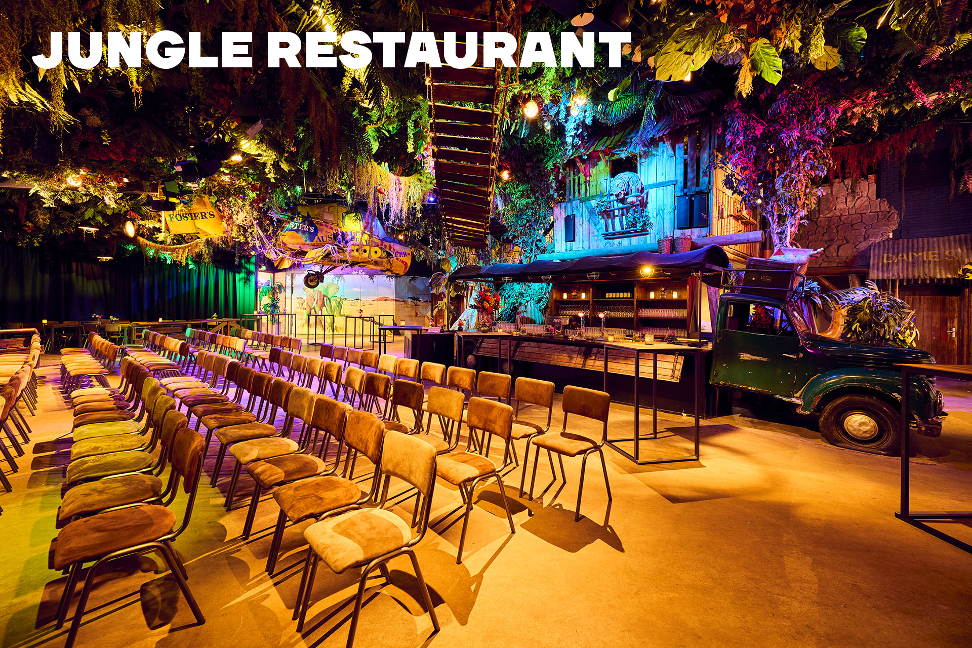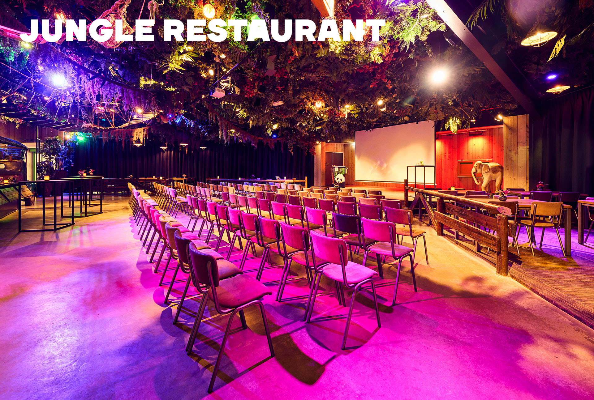 Of je nu komt voor een zakelijke bijeenkomst of een feestelijke avond, de Jungle biedt altijd een indrukwekkende ervaring. Deze locatie vormt een unieke setting voor zakelijke vergaderingen, evenementen, bijeenkomsten, workshops, feesten of diners in Utrecht. Wil je een zaal huren in Rhenen voor je volgende bijeenkomst?