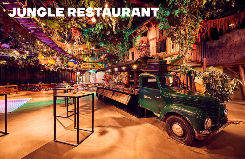 Het Jungle Restaurant is ook de perfecte setting voor (thema)feesten, diners en borrels. Tijdens een diner geniet je van een tropisch buffet met warme en koude gerechten, of kies voor een gezellige BBQ op het Jungle terras. Met entertainment en styling maak je de avond helemaal af.